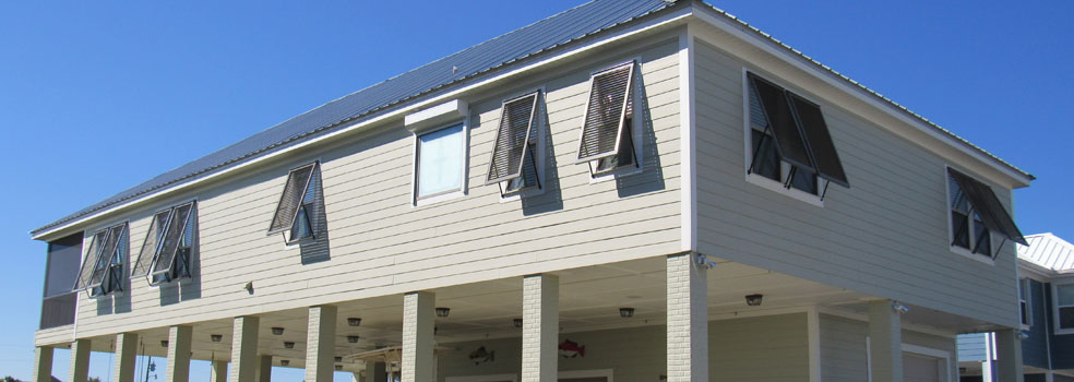 Our Bahama Shutters are HVHZ/non-HVHZ approved and has been evaluated by the Texas Department of Insurance for top-notch performance. Two options are available, our Single Panel Bahama Shutter and our Multi-Panel Bahama Shutter. The Single Panel is designed for windows with normal opening dimensions and can span up to 53 ½ inches wide. The Multi-Panel spans up to 38 inches in width for each panel but can have multiple panels on one system, making the Multi-Panel virtually limitless when it comes to width. Bahama Shutters are available in standard mill or white, with custom color options available upon request.